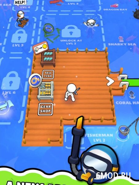 Dive & Fish - захватывающее подводное приключение с тайнами, сокровищами, риском, редкими морскими обитателями и могучими чудовищами. Вы побываете на всех морях и океанах планеты, сможете забросить удочку в самые глубокие воды и опуститься на самое дно. Каждый из водоемов наполнен уникальными видами рыб. Их сотни. Постарайтесь, чтобы каждый вид оказался в вашей коллекции: рыбы-клоуны, рыбы-молоты, электрические скаты и пираньи. Есть в наших морях и настоящие глубоководные монстры. Удастся ли вам пережить встречи с ними. Но самые сложными будут стычки с эпическими боссами, гигантскими подводными чудовищами. Каждое такое погружение принесет вам не только новые испытания, но и новые достижениями. Океан полон тайн и у вас есть возможность разгадать их. Открывайте новые зоны мирового океана и готовьтесь к новым впечатлениям.