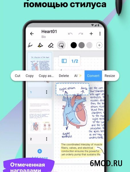 MyScript Notes для студентов ― мощное и функциональное приложение для создания заметок, аннотаций, сносок и других функций. Доступны просто заметки на чистом листе, а также на документе формата PDF. Вы сможете писать небольшие тексты пальцем, с экранной клавиатурой, или же используя стилус. Можно выставить напоминание о важных событиях, чтобы не забыть, о чем либо, и есть много других полезных функций. Приложение поддерживает многие десятки языков, и позволяет распознавать рукописный ввод, что обличит пользование. Также есть ИИ, подсказки в нужные моменты, и они подстраиваются под контрактного пользователя.