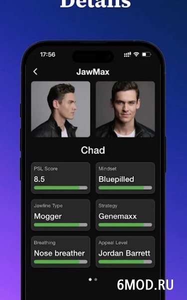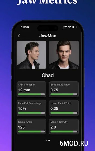 JawMax поможет вам сформировать четкую линию нижней челюсти без инъекций и имплантов. Интегрированный в утилиту искусственный интеллект оценит параметры вашего лица, проанализировав структуру, симметрию, пропорции и четкость линии челюсти, и предоставит рекомендации, что и как изменить. В частности, с помощью ежедневных упражнений на сопротивление, сжатие челюстей, подъем подбородка и улучшение осанки. Также достичь желаемого можно с помощью комплекса йоги, разработанного AI с учетом параметров вашего лица.